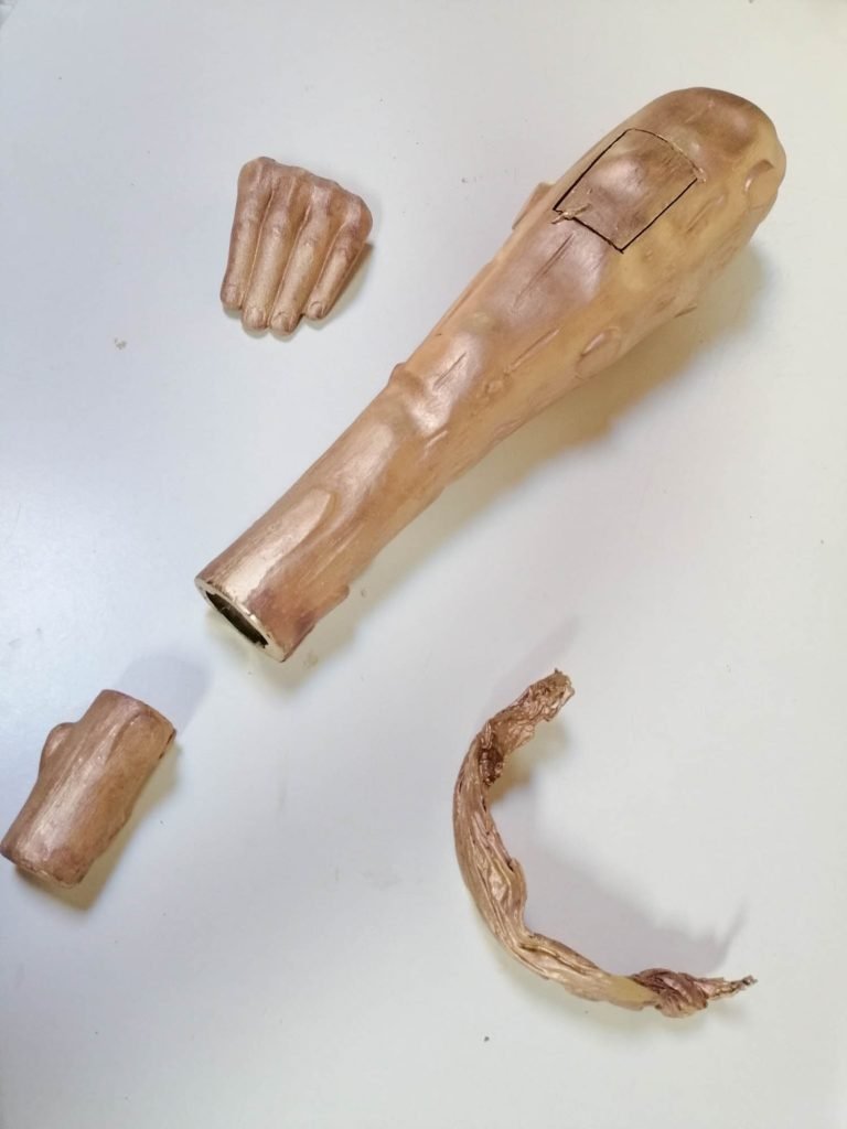 Il bronzo: Sono presenti degli elementi in bronzo utilizzati per raccontare la forza e violenza delle sculture. Per Ercole, ad esempio, è stata realizzata in bronzo la clava, la sua arma. Per il Ratto sono state realizzate in bronzo le dita del maschio, simbolo di violenza, che stringono con forza la donna. Sempre in bronzo la benda sugli occhi della donna per sottolineare l’indifferenza verso la vittima e allo stesso tempo è la violenza che subisce e che non vuole ammettere.