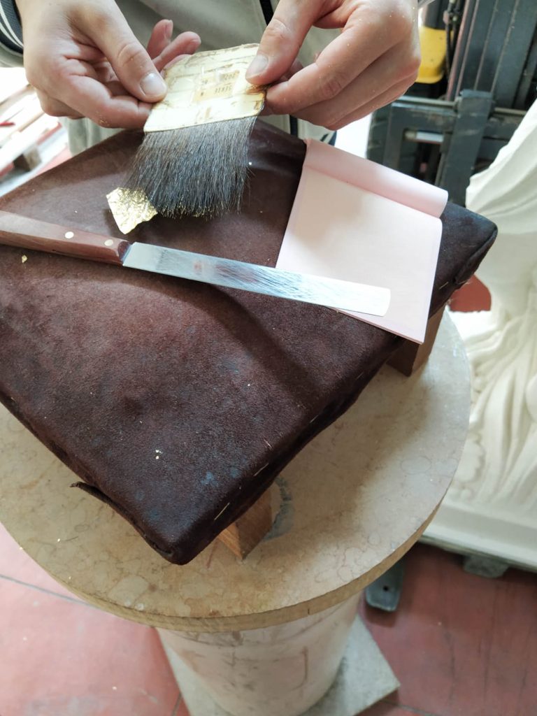 La foglia d’oro è stata applicata dal laboratorio del maestro artigiano Garbin Luciano di Gambugliano.