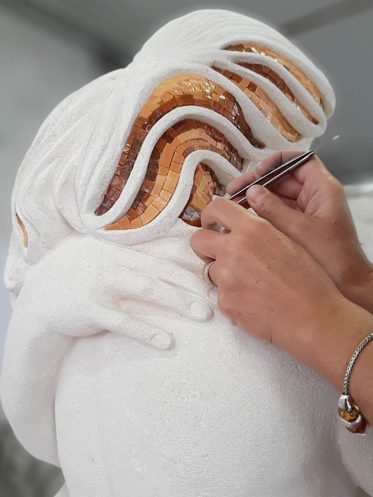 Il mosaico: Le parti in mosaico artistico colorato sono state inserite su tutte le sculture come segno contemporaneo. Allo stesso tempo ricordano anche le sculture greche e romane che in passato venivano dipinte con colori sgargianti.