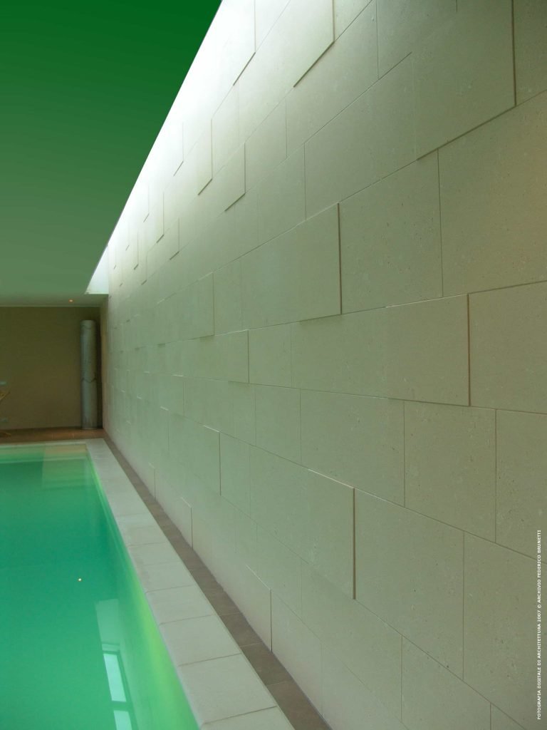 RIVESTIMENTO PARETE E BORDO PIASCINA IN PIETRA PALLADIO BIANCA