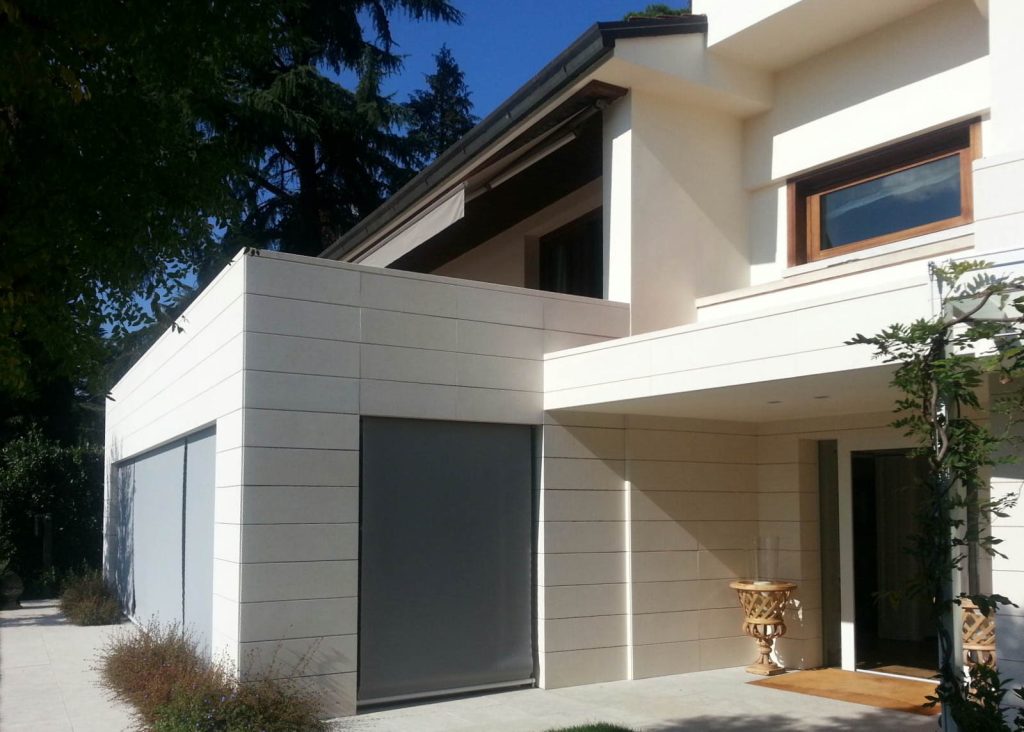 Questo progetto ha reinterpretato il concetto comune di rivestimento ventilato. Normalmente questo tipo di lavoro lo scegliamo quando i muri hanno un problema, quasi sempre legato all’umidità, e il rivestimento ventilato viene utilizzato per coprire e risolvere l’inconveniente. In questo caso l’architetto Cipriano Cavazza ci ha chiamati per applicare un rivestimento ventilato in Pietra di Vicenza per un ampliamento di una casa esistente, una costruzione tutta nuova, senza nessun tipo di problema. L’architetto ci ha proposto questa soluzione perché voleva che l’intera zona giorno fosse il più possibile confortevole a livello climatico ed acustico: il rivestimento ventilato crea un vuoto che fa circolare aria calda e fredda, una ventilazione forzata che favorisce un ottimo isolamento. Perfetto per garantire un confort termico ed acustico all’interno della casa. È nato così questo progetto di rivestimento in Pietra di Vicenza.